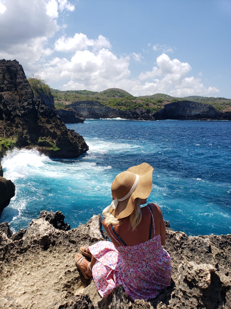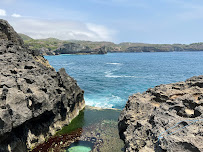 A natural infinity pool nestled between dramatic rock formations, Angel Billabong is a unique coastal lagoon where crystal-clear water collects at low tide. The naturally carved rock pool is filled with shimmering green and blue waters, creating a tranquil spot for visitors to dip their feet or take stunning photos. When the tide is low, the still waters provide a perfect opportunity for swimming and wading, offering a surreal experience of floating in nature’s very own rock pool. However, during high tide, the waves can crash forcefully into the rocks, making it unsafe for swimming. The view from Angel Billabong extends out to the open ocean, making it a spectacular spot to relax and take in the raw beauty of Nusa Penida’s coastline.