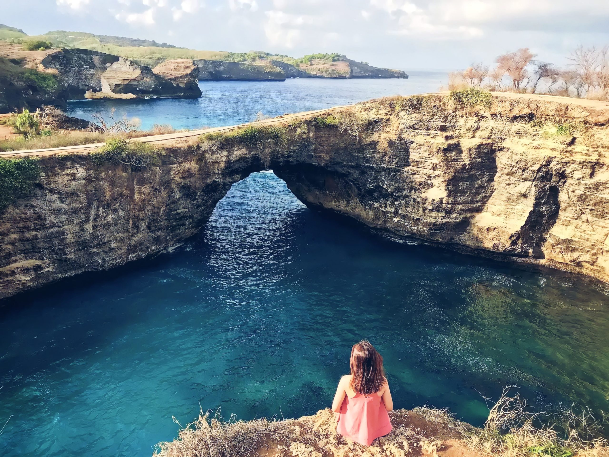 A breathtaking coastal formation, Broken Beach is a secluded cove with a massive natural rock arch that allows ocean water to flow into a circular lagoon. The unique geological structure was created by the collapse of an ancient cave, leaving behind a stunning natural bridge over the turquoise water. While there is no direct access to the water, visitors can walk along the cliffside trail to admire the incredible scenery and take panoramic photos of the secluded bay. The area is home to diverse marine life, and lucky visitors may even spot manta rays swimming near the arch. With its rugged charm and spectacular views, Broken Beach remains one of the most picturesque and tranquil spots in Nusa Penida.